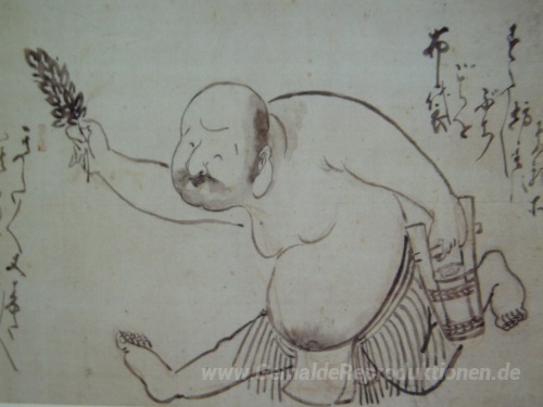 Wir bieten Ihnen eine handgefertigte Reproduktion auf Leinwand des berühmten Kunstwerks 'Sutasuta Bozu' von Hakuin Ekaku, aus dem Reproduktionsmuseum.