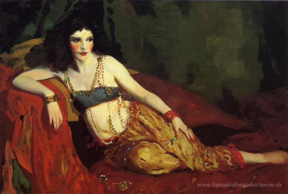 Wir bieten Ihnen eine handgefertigte Reproduktion auf Leinwand des berühmten Kunstwerks 'Tänzer von Delhi (Betalo Rubino)' von Robert Henri, aus dem Reproduktionsmuseum.