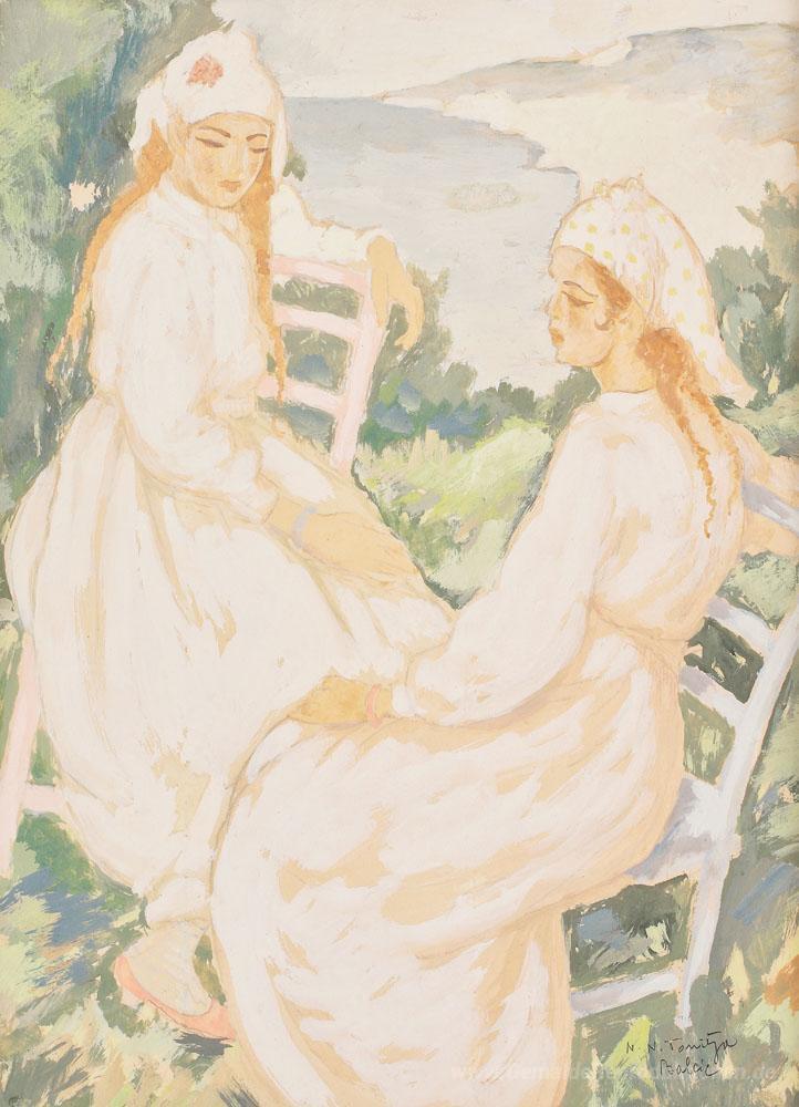 Wir bieten Ihnen eine handgefertigte Reproduktion auf Leinwand des berühmten Kunstwerks 'Tatar Frauen in Balcic' von Nicolae Tonitza, aus dem Reproduktionsmuseum.