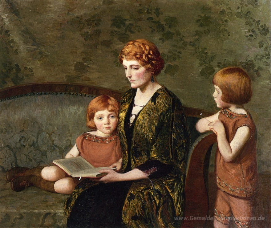 Wir bieten Ihnen eine handgefertigte Reproduktion auf Leinwand des berühmten Kunstwerks 'The Story Hour' von Lilla Cabot Perry, aus dem Reproduktionsmuseum.