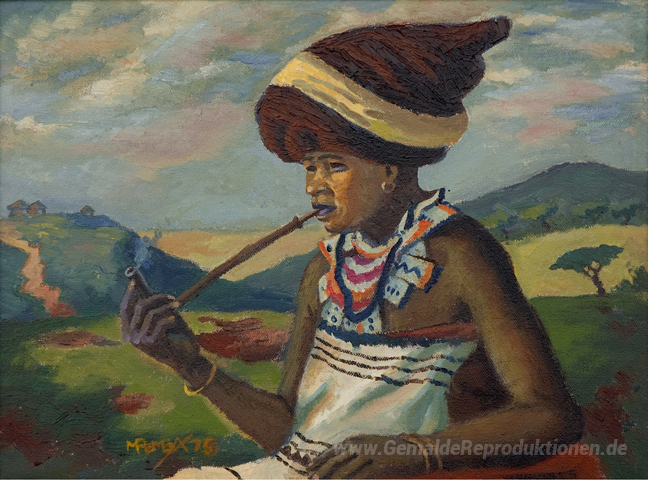 Wir bieten Ihnen eine handgefertigte Reproduktion auf Leinwand des berühmten Kunstwerks 'Traditionelle Xhosa Frau' von George Pemba, aus dem Reproduktionsmuseum.