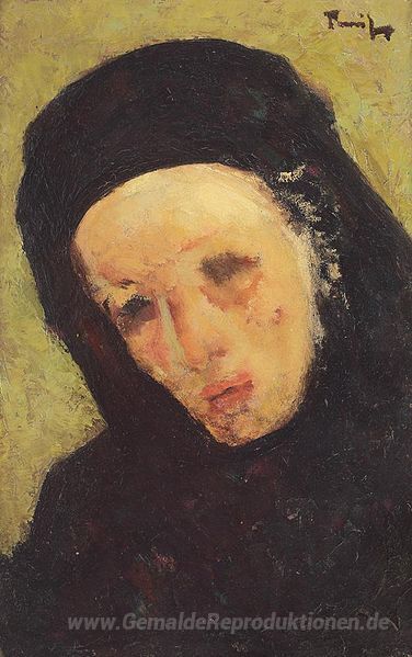 Wir bieten Ihnen eine handgefertigte Reproduktion auf Leinwand des berühmten Kunstwerks 'Trauernde' von Nicolae Tonitza, aus dem Reproduktionsmuseum.