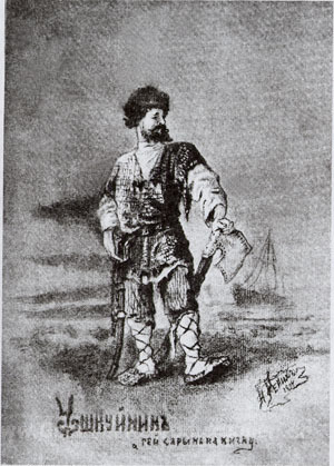 Wir bieten Ihnen eine handgefertigte Reproduktion auf Leinwand des berühmten Kunstwerks 'Ushkuinik' von Nicholas Roerich, aus dem Reproduktionsmuseum.