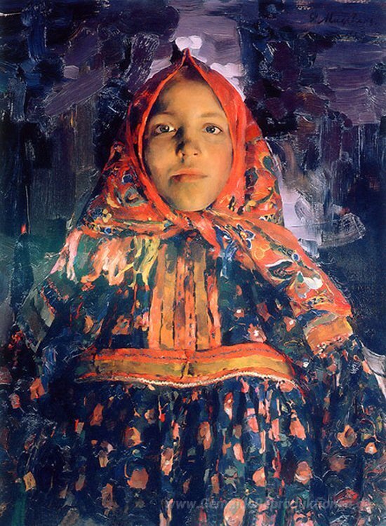 Wir bieten Ihnen eine handgefertigte Reproduktion auf Leinwand des berühmten Kunstwerks 'Verka' von Filipp Malyavin, aus dem Reproduktionsmuseum.
