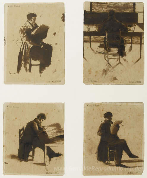 Wir bieten Ihnen eine handgefertigte Reproduktion auf Leinwand des berühmten Kunstwerks 'Vier Ansichten der Männer sitzen' von Eugene Delacroix, aus dem Reproduktionsmuseum.