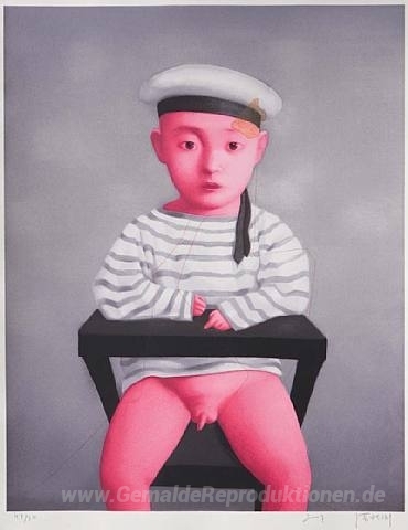 Wir bieten Ihnen eine handgefertigte Reproduktion auf Leinwand des berühmten Kunstwerks 'Wenig Navy' von Zhang Xiaogang, aus dem Reproduktionsmuseum.