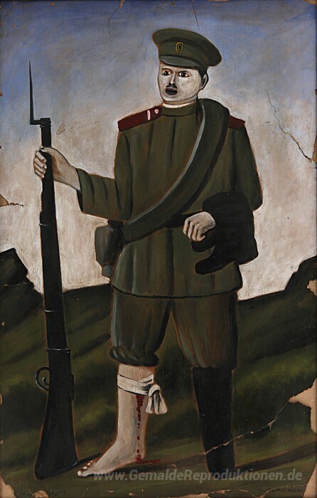 Wir bieten Ihnen eine handgefertigte Reproduktion auf Leinwand des berühmten Kunstwerks 'Wounded soldier (Teil des Diptychon)' von Niko Pirosmani, aus dem Reproduktionsmuseum.
