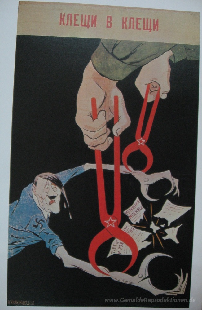 Wir bieten Ihnen eine handgefertigte Reproduktion auf Leinwand des berühmten Kunstwerks 'Claws in Klaue' von Kukryniksy, aus dem Reproduktionsmuseum.