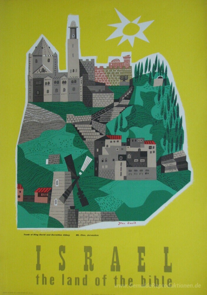 Wir bieten Ihnen eine handgefertigte Reproduktion auf Leinwand des berühmten Kunstwerks 'Grab von König David und Dormitio Abbay, Mt. Zion, Jerusalem' von Jean David, aus dem Reproduktionsmuseum.