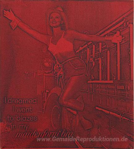 Wir bieten Ihnen eine handgefertigte Reproduktion auf Leinwand des berühmten Kunstwerks 'Ich träumte, ich ging zum Teufel in meinem Maiden Bra (rot)' von Billy Apple, aus dem Reproduktionsmuseum.