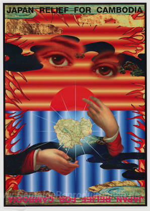 Wir bieten Ihnen eine handgefertigte Reproduktion auf Leinwand des berühmten Kunstwerks 'Japan Relief für Kambodscha' von Tadanori Yokoo, aus dem Reproduktionsmuseum.