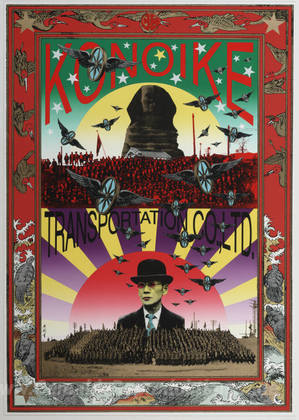 Wir bieten Ihnen eine handgefertigte Reproduktion auf Leinwand des berühmten Kunstwerks 'Konoike Transport Co., Ltd' von Tadanori Yokoo, aus dem Reproduktionsmuseum.