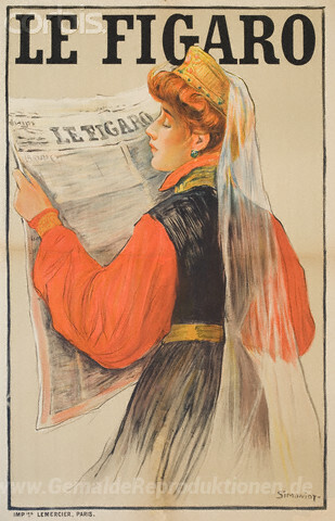 Wir bieten Ihnen eine handgefertigte Reproduktion auf Leinwand des berühmten Kunstwerks 'Le Figaro' von Michel Simonidy, aus dem Reproduktionsmuseum.