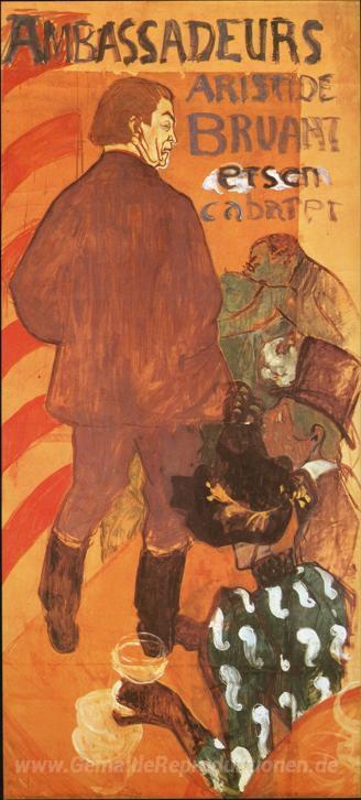 Wir bieten Ihnen eine handgefertigte Reproduktion auf Leinwand des berühmten Kunstwerks 'Les Ambassadeurs Aristide Bruant und seine Cabaret' von Henri de Toulouse-Lautrec, aus dem Reproduktionsmuseum.