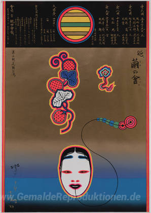 Wir bieten Ihnen eine handgefertigte Reproduktion auf Leinwand des berühmten Kunstwerks 'Plakat für eine Noh Spielen' von Tadanori Yokoo, aus dem Reproduktionsmuseum.