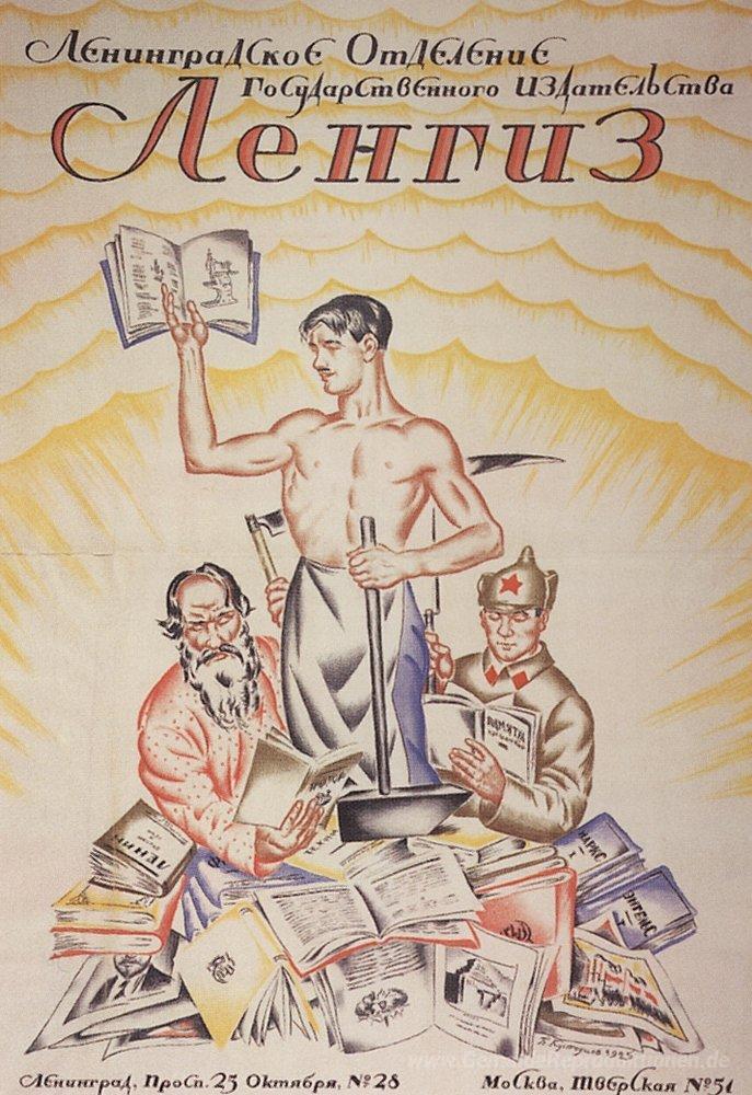 Wir bieten Ihnen eine handgefertigte Reproduktion auf Leinwand des berühmten Kunstwerks 'Poster Leningrad Department of State Publishing (Lengiz)' von Boris Kustodiev, aus dem Reproduktionsmuseum.
