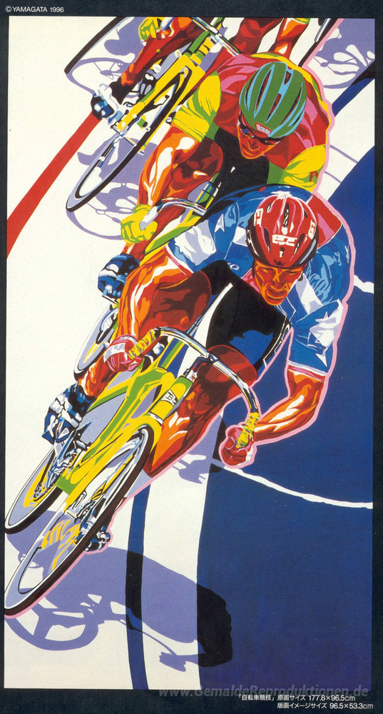 Wir bieten Ihnen eine handgefertigte Reproduktion auf Leinwand des berühmten Kunstwerks 'Radfahren' von Hiro Yamagata, aus dem Reproduktionsmuseum.