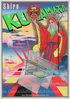 Wir bieten Ihnen eine handgefertigte Reproduktion auf Leinwand des berühmten Kunstwerks 'Shiro Kuramata' von Tadanori Yokoo, aus dem Reproduktionsmuseum.
