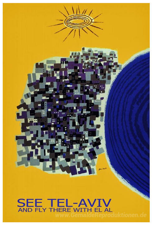 Wir bieten Ihnen eine handgefertigte Reproduktion auf Leinwand des berühmten Kunstwerks 'Siehe Tel Aviv' von Jean David, aus dem Reproduktionsmuseum.