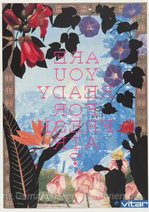 Wir bieten Ihnen eine handgefertigte Reproduktion auf Leinwand des berühmten Kunstwerks 'Sind Sie bereit für frische Luft, Vitar' von Tadanori Yokoo, aus dem Reproduktionsmuseum.
