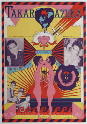Wir bieten Ihnen eine handgefertigte Reproduktion auf Leinwand des berühmten Kunstwerks 'Takarazuka Grand Revue' von Tadanori Yokoo, aus dem Reproduktionsmuseum.