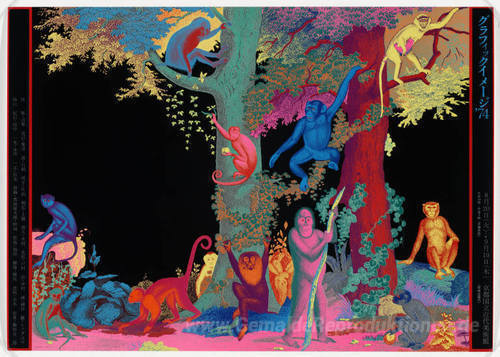 Wir bieten Ihnen eine handgefertigte Reproduktion auf Leinwand des berühmten Kunstwerks 'Untitled (Grafik)' von Tadanori Yokoo, aus dem Reproduktionsmuseum.