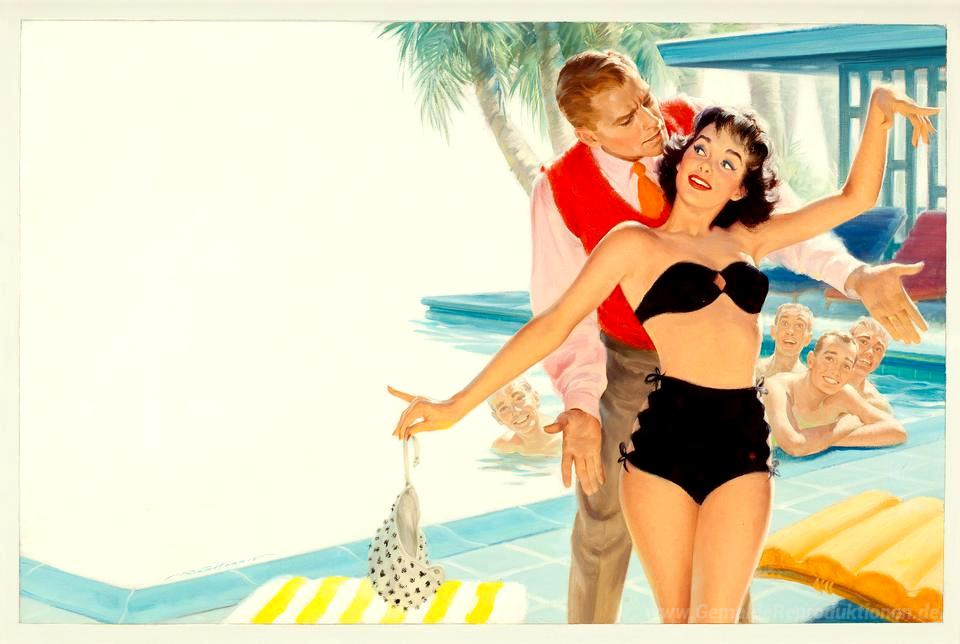 Willkommen in unserer exquisiten Sammlung von Ölgemälden, die die künstlerische Meisterschaft von Talenten wie Robert G. Harris präsentieren. Seine Werke spiegeln eine einzigartige Mischung aus klassischer Technik und zeitgenössischem Flair wider, wobei jedes Stück eine emotionale Tiefe und künstlerische Raffinesse ausstrahlt, die das Ambiente Ihres Raumes bereichern kann. Eines der herausragenden Werke ist Die Dame Ändert ihr Style, Saturday Evening Post Geschichte Illu, das mit lebendigen Farben und dynamischen Kompositionen begeistert.