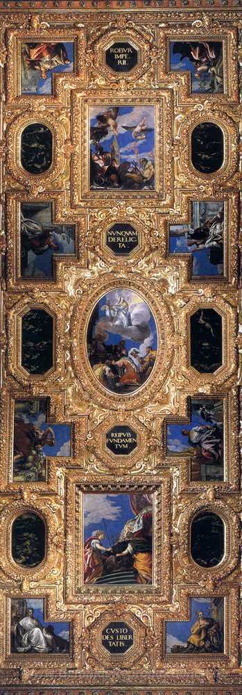 Wir bieten Ihnen eine handgefertigte Reproduktion auf Leinwand des berühmten Kunstwerks 'Deckenbilder' von Paolo Veronese, aus dem Reproduktionsmuseum.