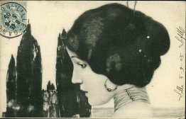 Mädchen Köpfe auf Weihnachten-Laub Hintergrund