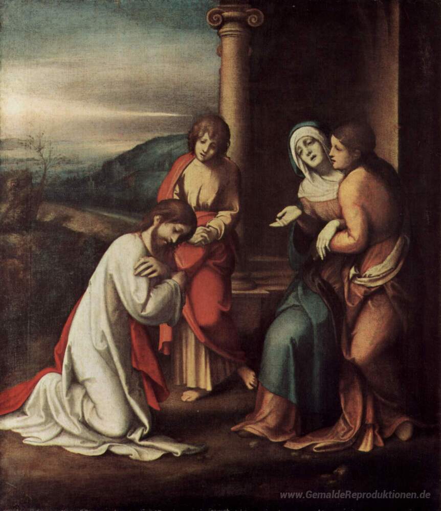 Wir bieten Ihnen eine handgefertigte Reproduktion auf Leinwand des berühmten Kunstwerks 'Abfahrt der Christus von Mary, bei Maria und Martha, die Schwest' von Correggio, aus dem Reproduktionsmuseum.