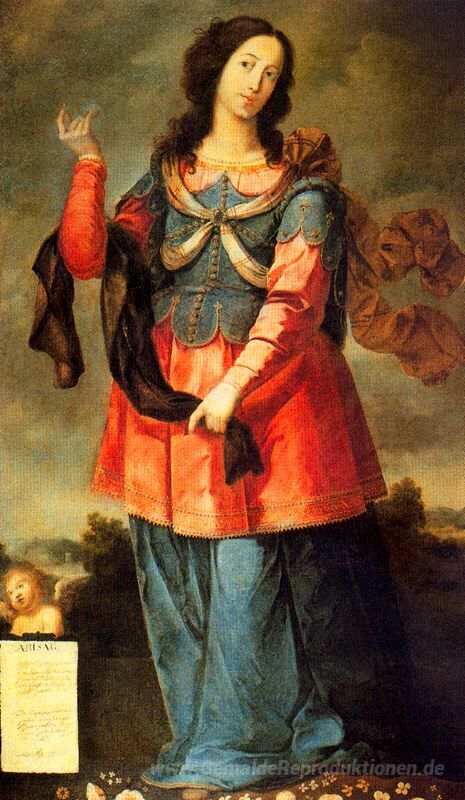 Wir bieten Ihnen eine handgefertigte Reproduktion auf Leinwand des berühmten Kunstwerks 'Abisag' von Josefa de Obidos, aus dem Reproduktionsmuseum.