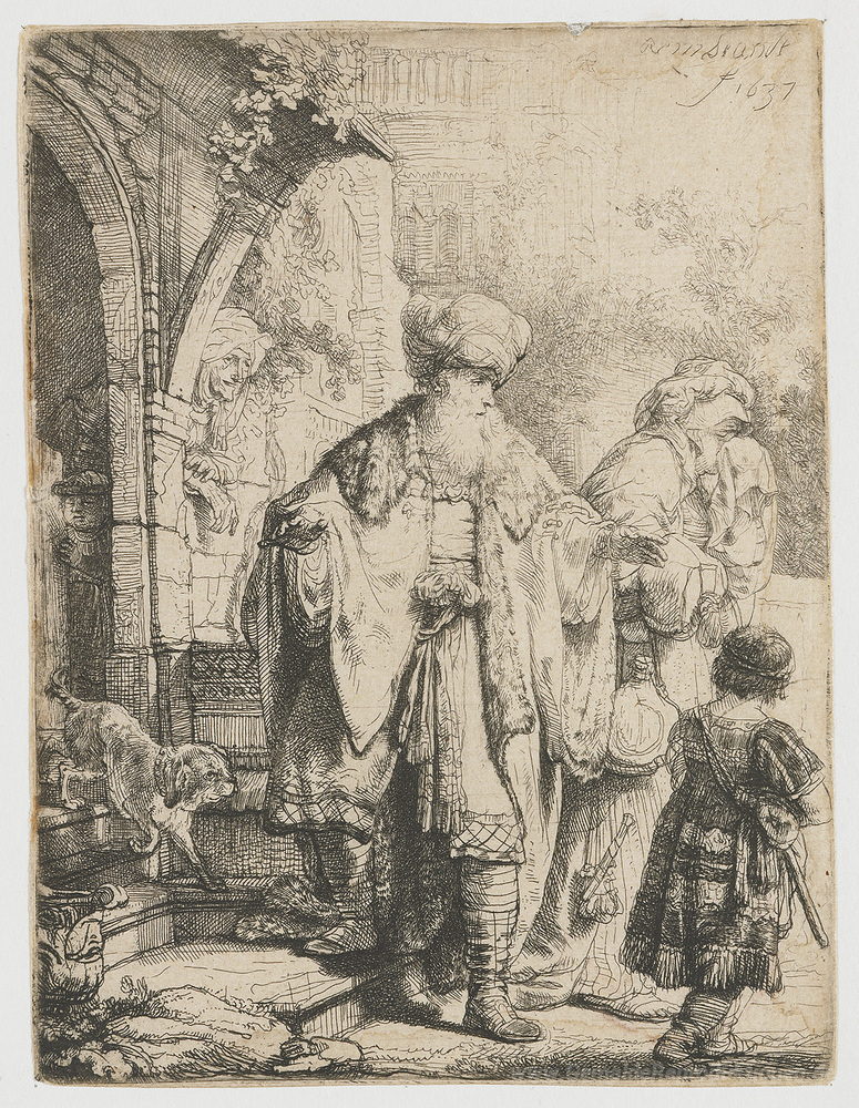 Wir bieten Ihnen eine handgefertigte Reproduktion auf Leinwand des berühmten Kunstwerks 'Abraham Abberufung Hagar' von Rembrandt, aus dem Reproduktionsmuseum.