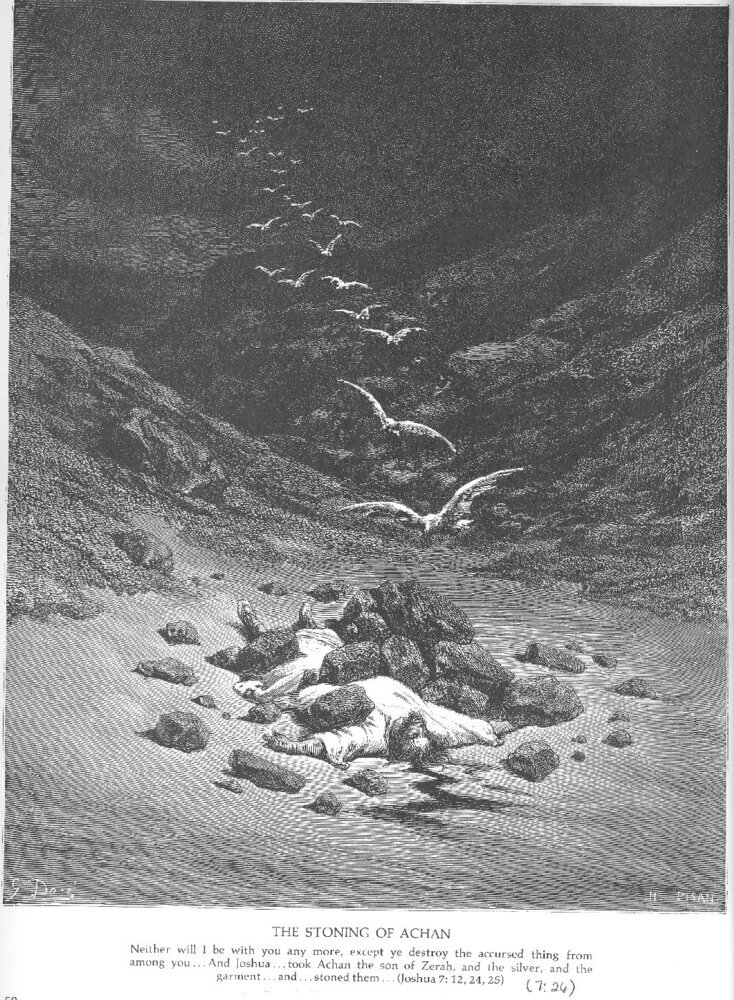 Wir bieten Ihnen eine handgefertigte Reproduktion auf Leinwand des berühmten Kunstwerks 'Achan wird zu Tode gesteinigt' von Gustave Dore, aus dem Reproduktionsmuseum.