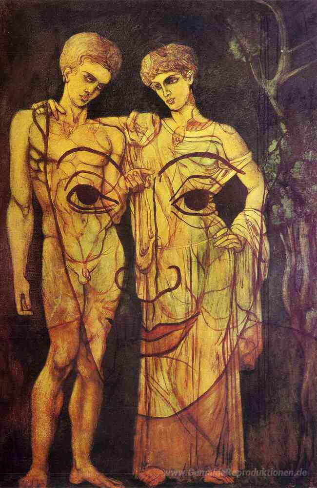 Wir bieten Ihnen eine handgefertigte Reproduktion auf Leinwand des berühmten Kunstwerks 'Adam und Eva' von Francis Picabia, aus dem Reproduktionsmuseum.