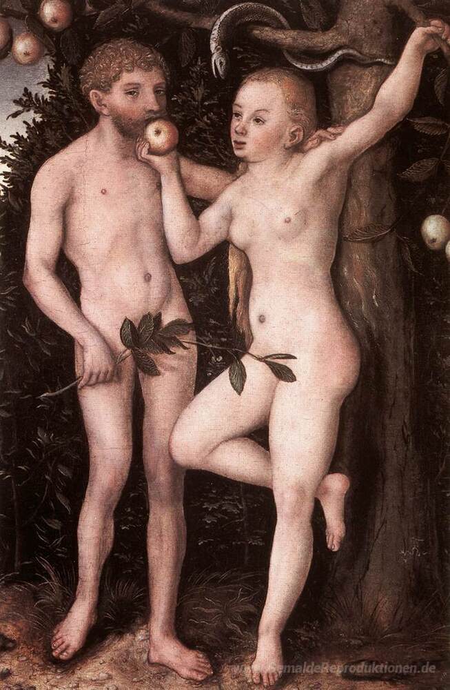 Wir bieten Ihnen eine handgefertigte Reproduktion auf Leinwand des berühmten Kunstwerks 'Adam und Eva' von Lucas Cranach the Elder, aus dem Reproduktionsmuseum.