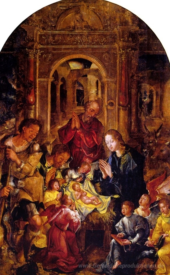 Wir bieten Ihnen eine handgefertigte Reproduktion auf Leinwand des berühmten Kunstwerks 'Adoração dos Pastores' von Gregorio Lopes, aus dem Reproduktionsmuseum.
