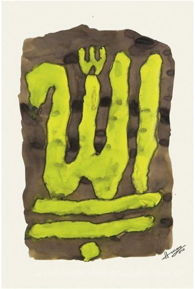 Wir bieten Ihnen eine handgefertigte Reproduktion auf Leinwand des berühmten Kunstwerks 'Allah' von M.F. Husain, aus dem Reproduktionsmuseum.