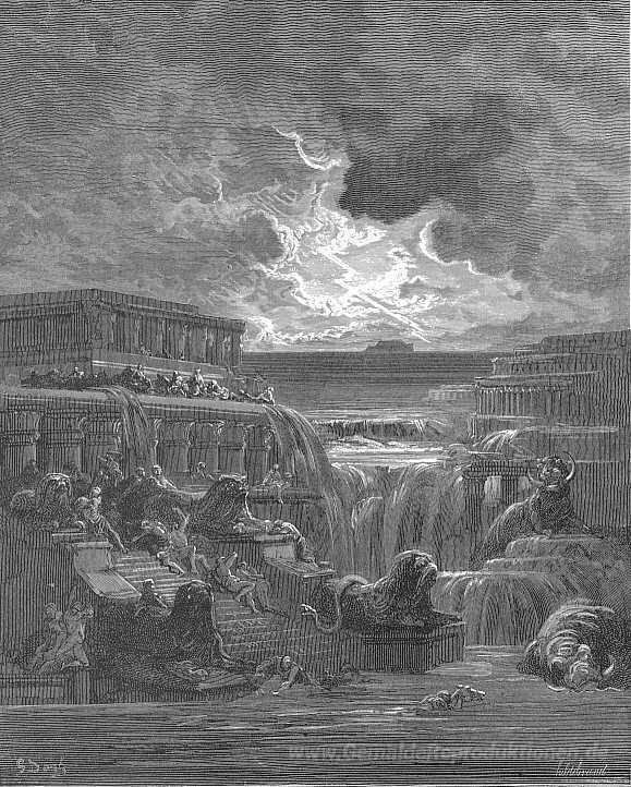 Wir bieten Ihnen eine handgefertigte Reproduktion auf Leinwand des berühmten Kunstwerks 'Alle Wohnungen sonst Flut überwältigt, und sie mit all ihren Pom' von Gustave Dore, aus dem Reproduktionsmuseum.