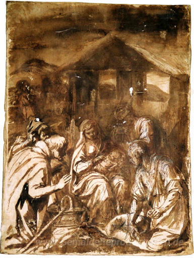 Wir bieten Ihnen eine handgefertigte Reproduktion auf Leinwand des berühmten Kunstwerks 'Anbetung der Hirten' von Francisco de Zurbaran, aus dem Reproduktionsmuseum.