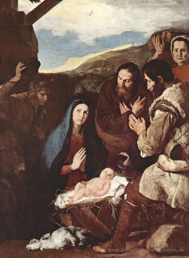 Wir bieten Ihnen eine handgefertigte Reproduktion auf Leinwand des berühmten Kunstwerks 'Anbetung der Hirten' von Jusepe de Ribera, aus dem Reproduktionsmuseum.