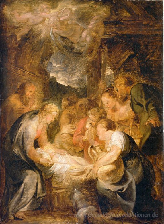 Wir bieten Ihnen eine handgefertigte Reproduktion auf Leinwand des berühmten Kunstwerks 'Anbetung der Hirten' von Peter Paul Rubens, aus dem Reproduktionsmuseum.
