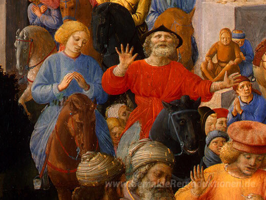 Wir bieten Ihnen eine handgefertigte Reproduktion auf Leinwand des berühmten Kunstwerks 'Anbetung der Könige (Detail)' von Filippo Lippi, aus dem Reproduktionsmuseum.