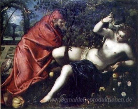 Wir bieten Ihnen eine handgefertigte Reproduktion auf Leinwand des berühmten Kunstwerks 'Angelica und der Einsiedler' von Tintoretto, aus dem Reproduktionsmuseum.