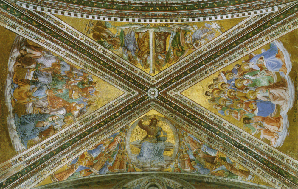 Wir bieten Ihnen eine handgefertigte Reproduktion auf Leinwand des berühmten Kunstwerks 'Ansicht der Kapelle Gewölbe' von Fra Angelico, aus dem Reproduktionsmuseum.