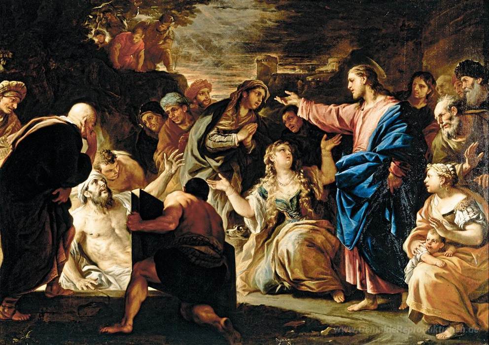 Wir bieten Ihnen eine handgefertigte Reproduktion auf Leinwand des berühmten Kunstwerks 'Auferweckung des Lazarus' von Luca Giordano, aus dem Reproduktionsmuseum.