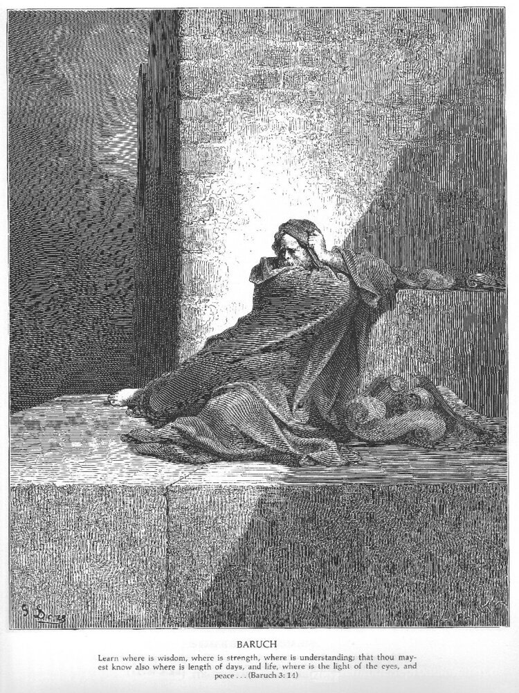 Wir bieten Ihnen eine handgefertigte Reproduktion auf Leinwand des berühmten Kunstwerks 'Baruch' von Gustave Dore, aus dem Reproduktionsmuseum.