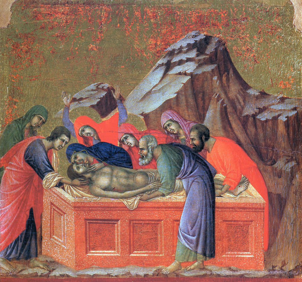 Wir bieten Ihnen eine handgefertigte Reproduktion auf Leinwand des berühmten Kunstwerks 'Beerdigung' von Duccio, aus dem Reproduktionsmuseum.