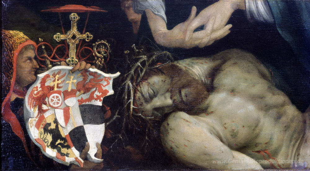 Wir bieten Ihnen eine handgefertigte Reproduktion auf Leinwand des berühmten Kunstwerks 'Beweinung Christi (Detail)' von Matthias Grünewald, aus dem Reproduktionsmuseum.