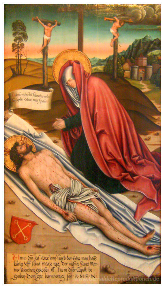 Wir bieten Ihnen eine handgefertigte Reproduktion auf Leinwand des berühmten Kunstwerks 'Beweinung Christi' von Bernhard Strigel, aus dem Reproduktionsmuseum.