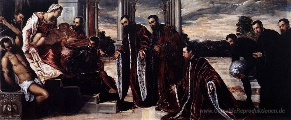 Wir bieten Ihnen eine handgefertigte Reproduktion auf Leinwand des berühmten Kunstwerks 'Camerlenghi Madonna (Madonna der Schatzmeister)' von Tintoretto, aus dem Reproduktionsmuseum.
